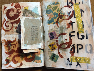 Since I really loved Tim's background I used the burlap layering stencil to get my plaid effect. At this point, with my hands covered in various ink colors, I had to admit that having an ink pad with multiple colors would have been much neater. Note to self: There's a reason for what Tim does.